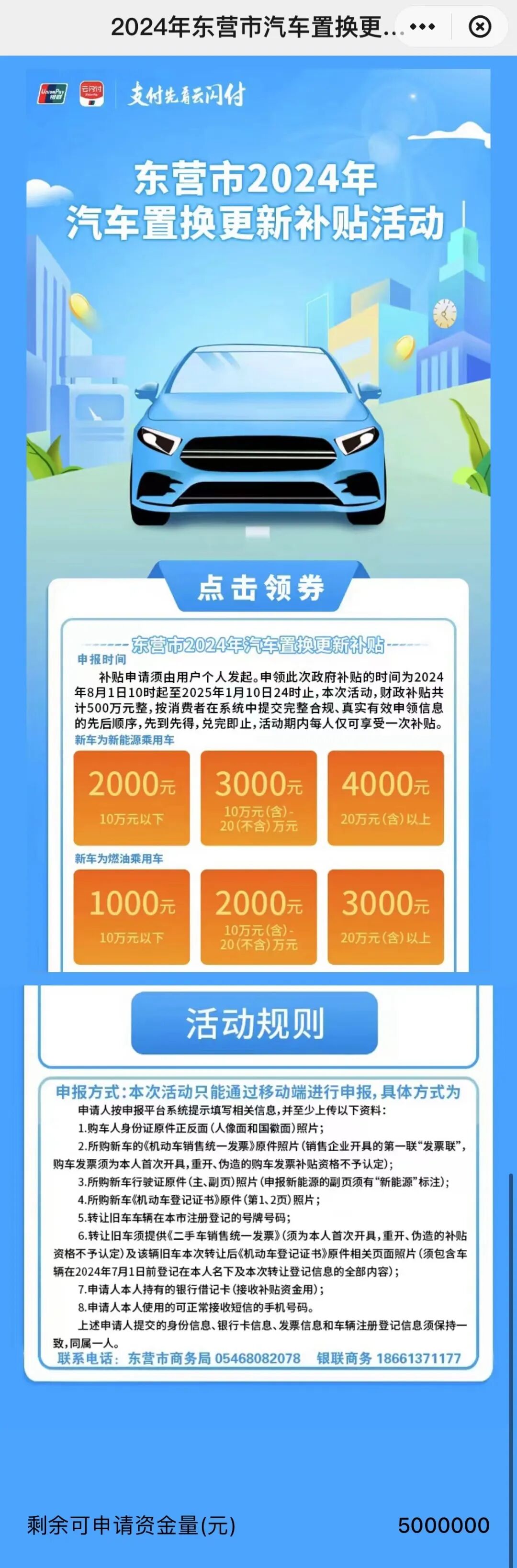 2024「為深入貫徹落實(shí)國家和省消費(fèi)品以舊換新工作部署,推動(dòng)全市汽車以舊換新開展,根據(jù)市商務(wù)局等3部門出臺(tái)的《東營市2024年汽車置換更新補(bǔ)貼實(shí)施細(xì)則》,8月1日起,轉(zhuǎn)讓個(gè)人名下汽車并購置新車的個(gè)人消