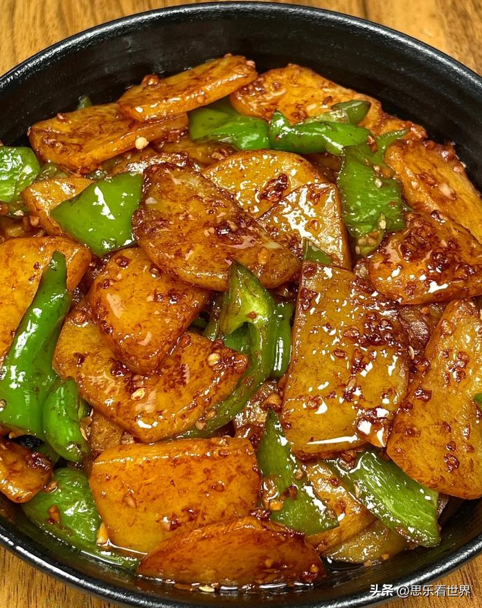 土豆炒至綿軟帶焦邊,青椒脆爽微辣,醬香裹滿每塊食材,粉糯與脆嫩交織,家常味十足超下飯。